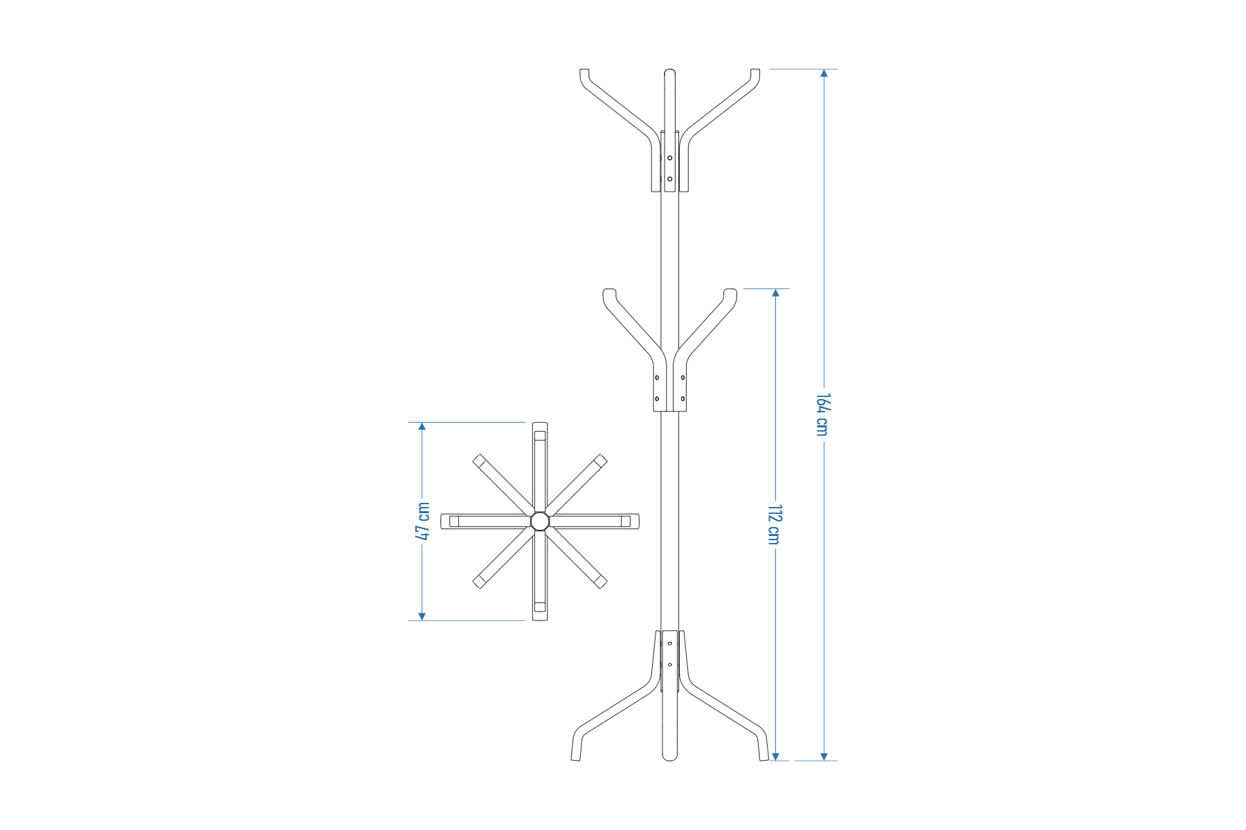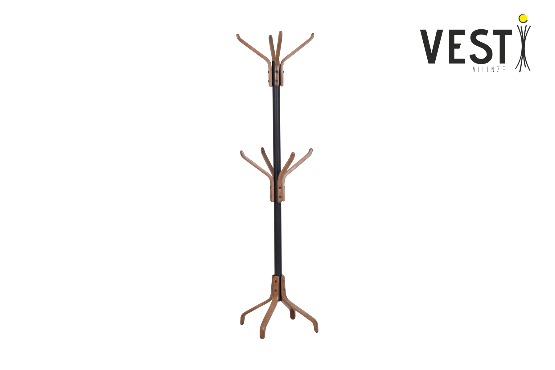 Vesti Ahşap Ayaklı Siyah Metal Portmanto Elbise Askılığı Kestane – 8 Kollu