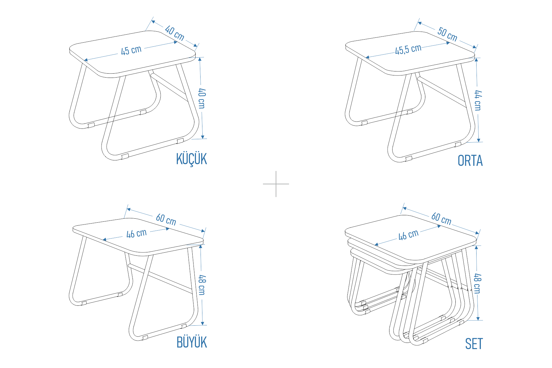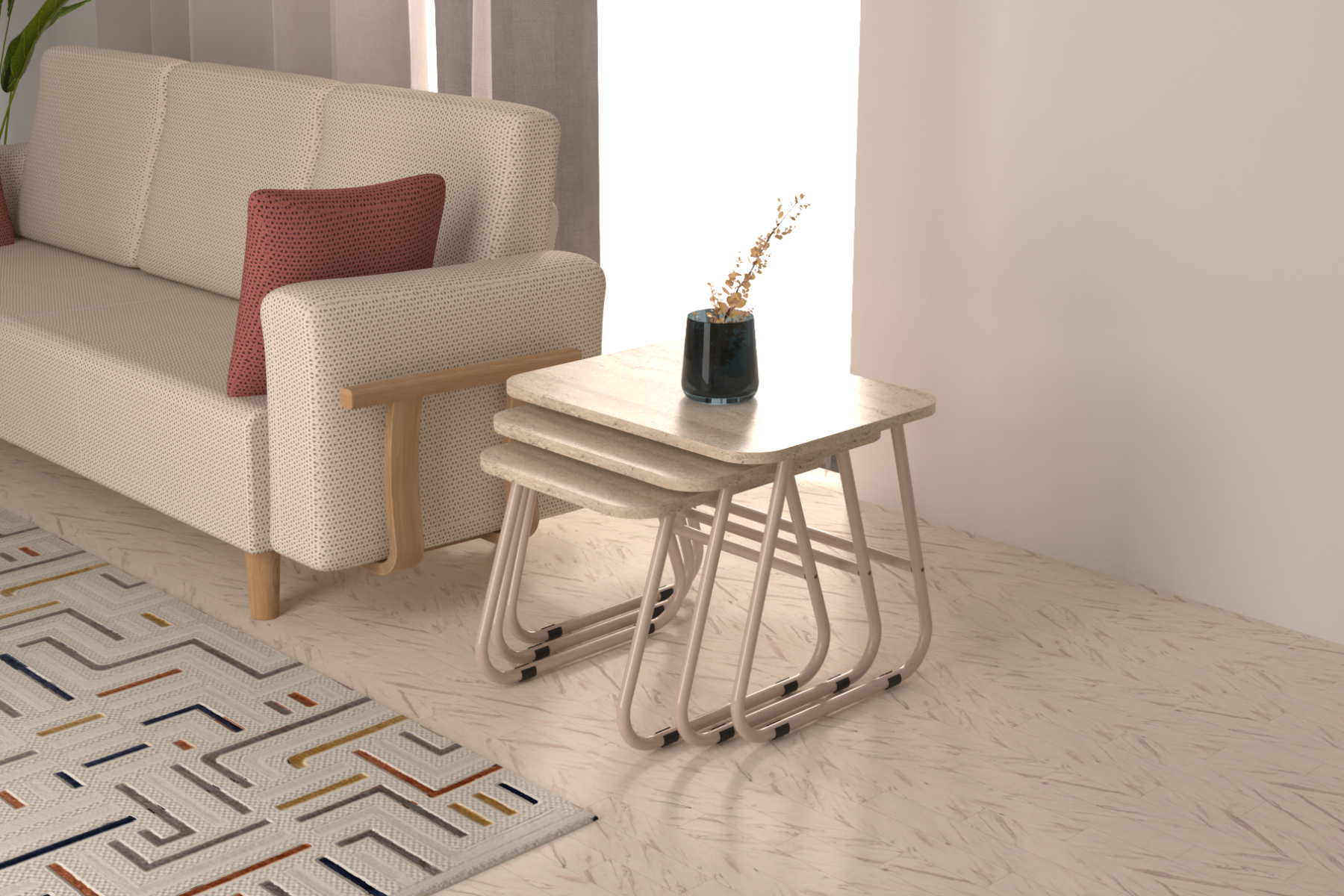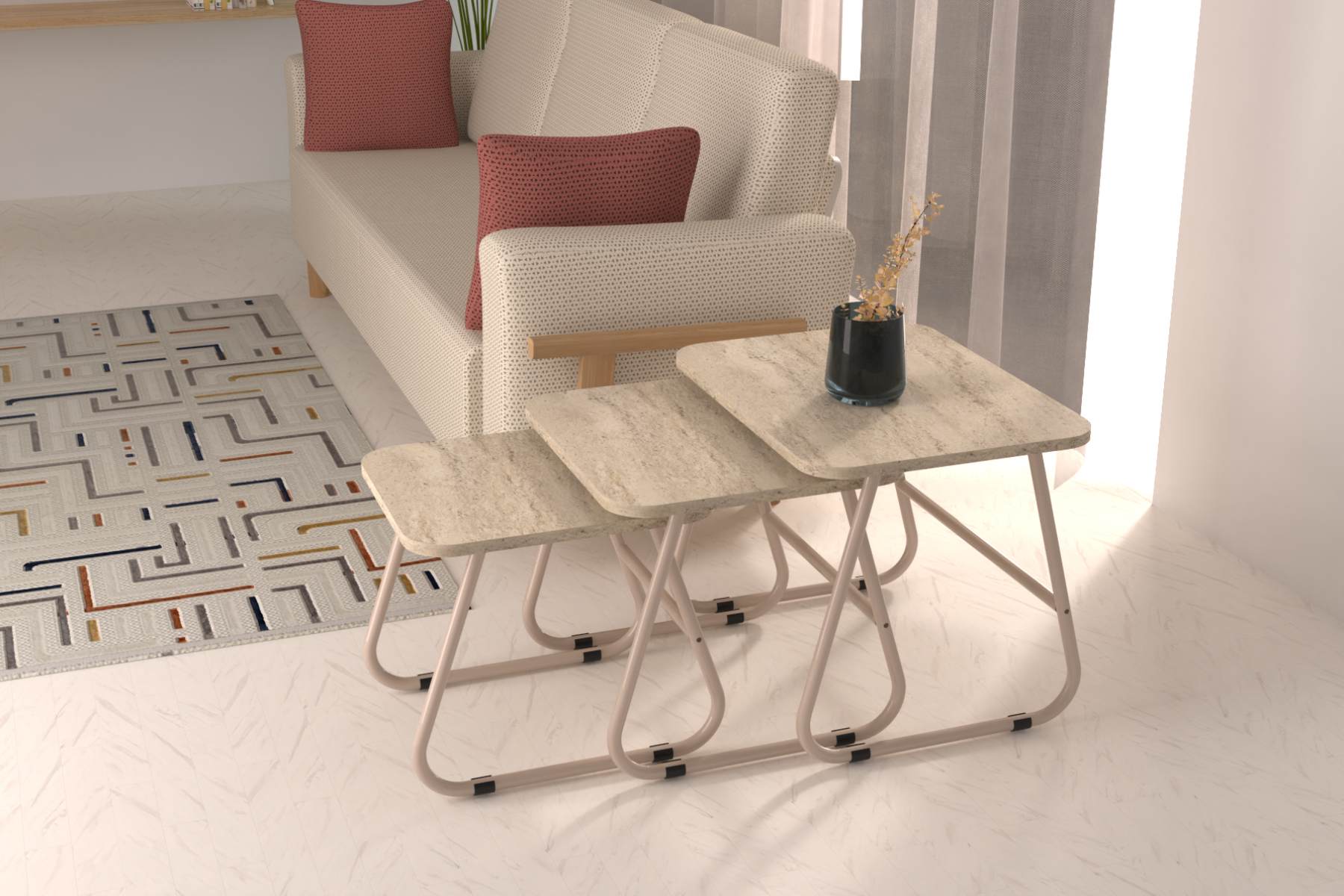 Zigana Çok Amaçlı Vizon Metal Ayak 3’lü Zigon Sehpa Traverten